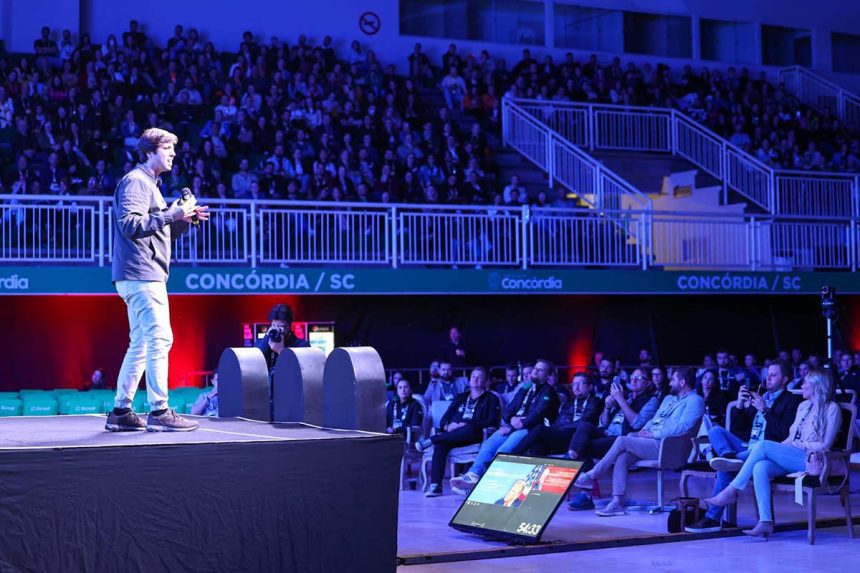 Concórdia/SC viveu na última sexta-feira, 26, o segundo dia da 10ª edição do HJ Conference, conferência nacional de empreendedorismo e inovação que deve reunir entre 6 e 8 mil participantes até o encerramento, neste sábado. O evento, organizado pela A9 Educação, trouxe novamente arenas cheias e intensa movimentação na feira de negócios.
