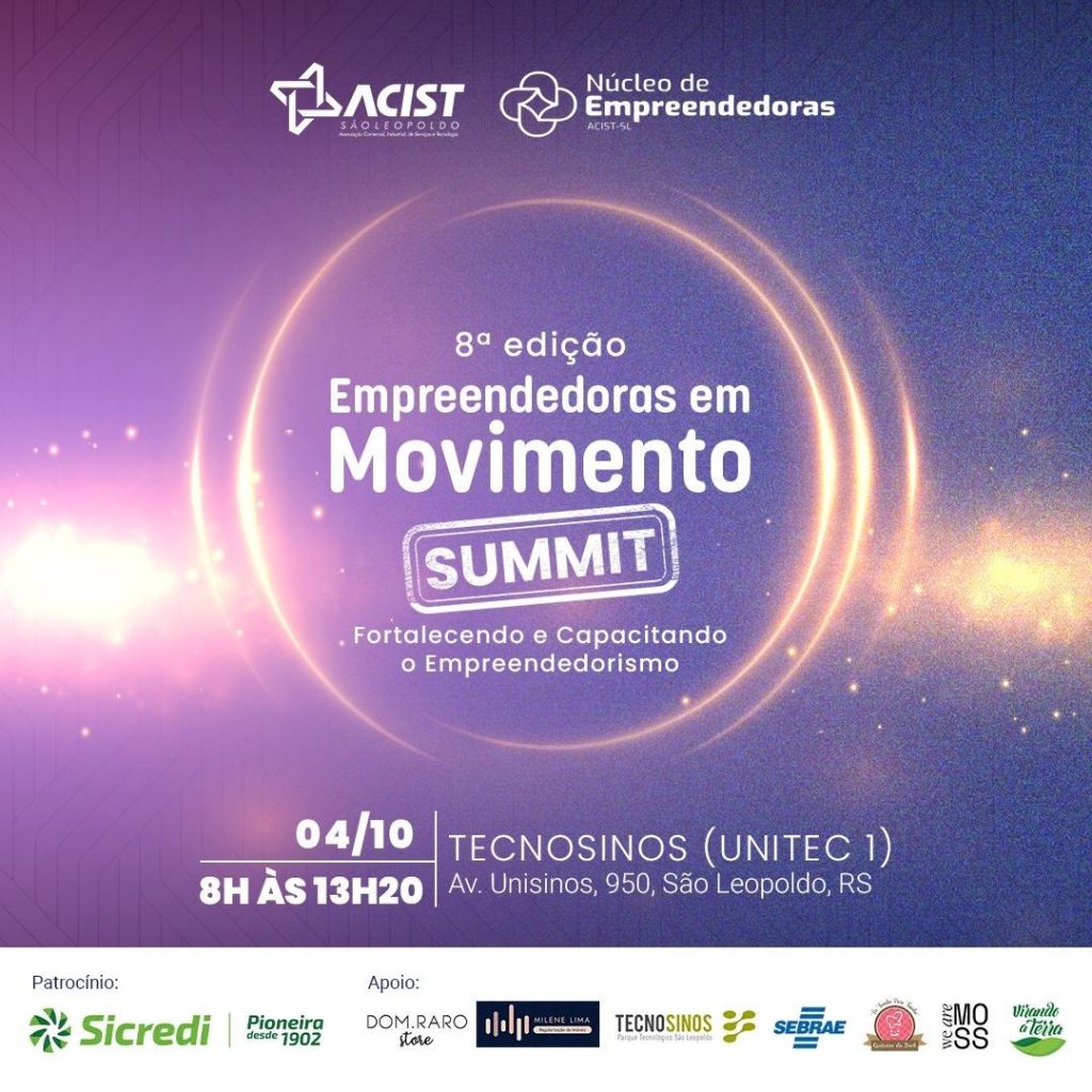 O Núcleo de Empreendedoras da ACIST-SL promove no dia 4, o 8º Empreendedoras em Movimento Summit: Fortalecendo e Capacitando o Empreendedorismo. O evento, que será realizado no Tecnosinos, representa a força, a resiliência e a inovação para o empreendedorismo.