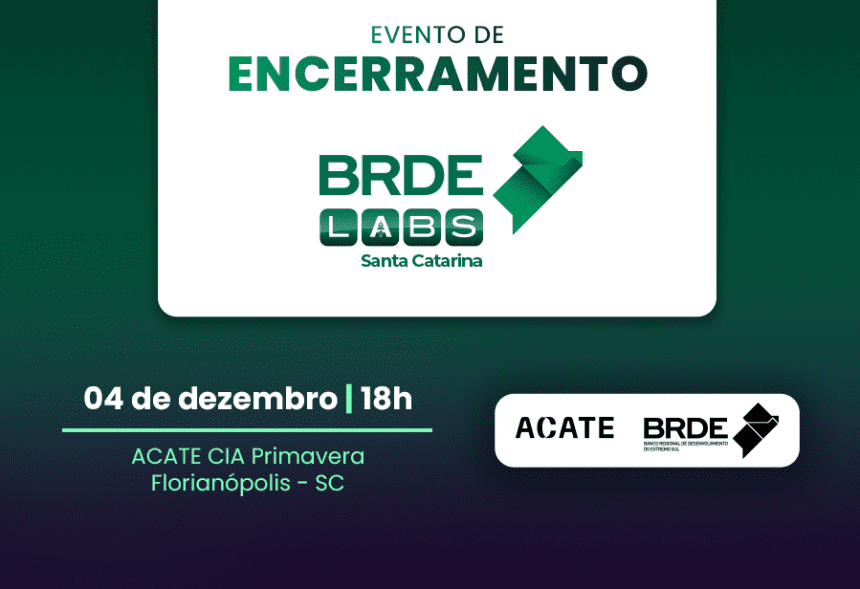 O programa de aceleração de startups BRDE Labs SC finalizará o seu quarto ano de atividades em um evento de celebração da jornada de desenvolvimento de mais de 130 negócios impactados em 2025. O encerramento desta edição da iniciativa do Banco Regional de Desenvolvimento do Extremo Sul (BRDE), em parceria com a Acate, será no próximo dia 4 de dezembro, às 18h, no CIA Primavera, em Florianópolis.