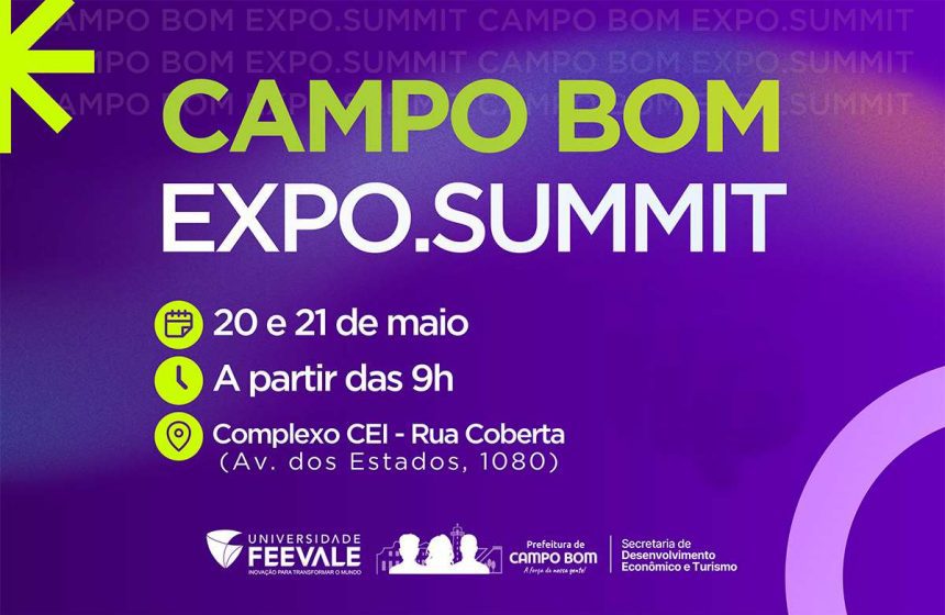 A região recebe, nos dias 20 e 21 de maio, o Campo Bom Expo.Summit 2026, evento de inovação e empreendedorismo promovido pela Prefeitura Municipal de Campo Bom, com a parceria da Universidade Feevale. A iniciativa acontece em dois espaços do município: Complexo CEI, cujo Teatro e Cinema receberão palestras e bate-papos, e a Rua Coberta, que contará com palco e estandes de exposição. A proposta é proporcionar um grande ambiente de troca de conhecimento, networking e apresentação de soluções inovadoras.